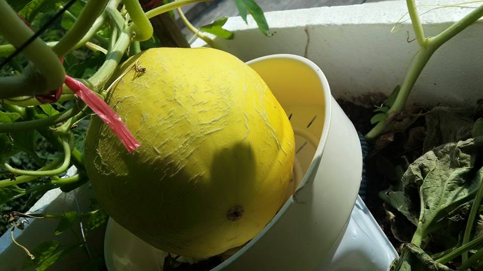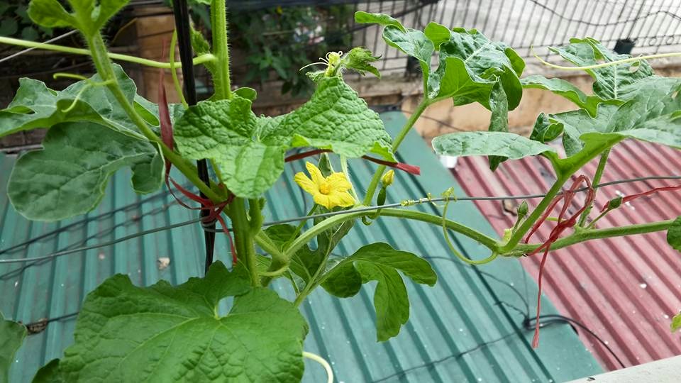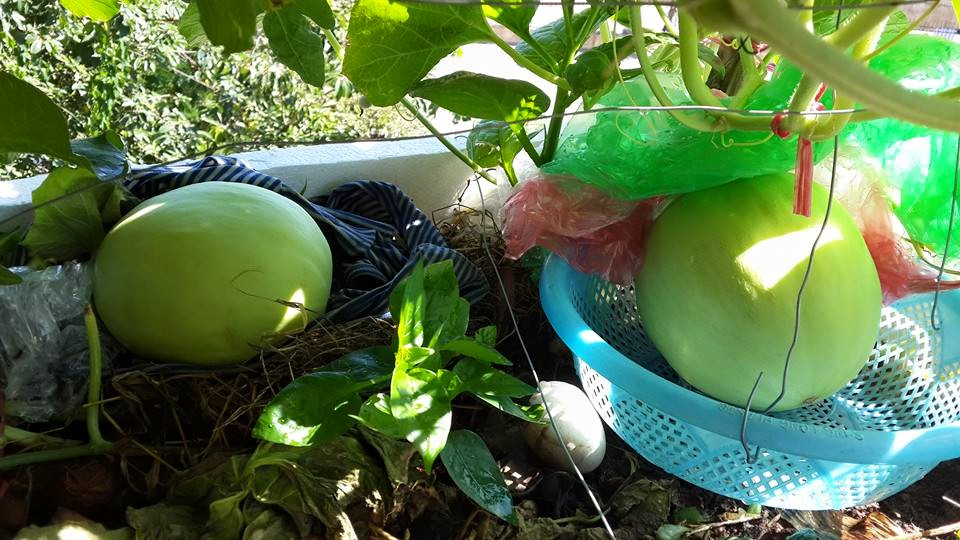 Chị Huyền rất mát tay trồng dưa trong thùng xốp tại nhà