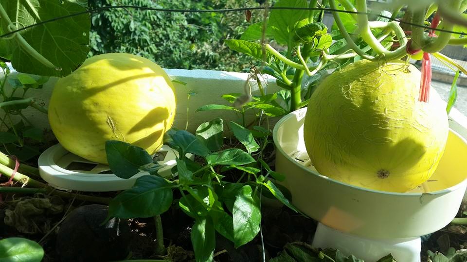 Những trái dưa nhà chị Huyền trồng trong thùng xốp nặng đến tận 2kg/quả.