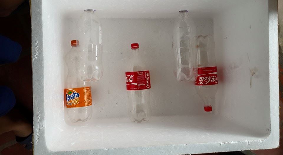 Ở đáy thùng xốp, chị Huyền cho 5 vỏ chai nước suối vào. Các chai này đều có nắp đậy kín. Cách làm này khiến lỗ thoát nước to. Hơn nữa, bụng chai nước suối rất to, khiến cho không khí vào ra dễ dàng – nhờ đó ung cấp oxy dồi dào cho rễ và thải CO2 ra ngoài dễ dàng.