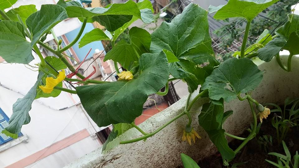 Đội vợ chồng trẻ – anh Cảnh, chị Huyền mới bắt đầu trồng rau sạch tại nhà từ 3 năm trước nhưng đã tích lũy được cho mình khá nhiều kinh nghiệm. Từ ý định chỉ trồng rau sạch trong thùng xốp để đảm bảo cho con ăn dặm, anh chị chuyển sang thử nghiệm cả những loại cây quả như khế, ổi, và đặc biệt thành công với các loại dưa lê, dưa vàng.