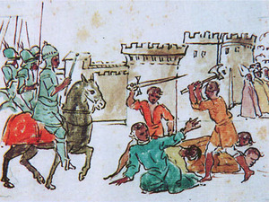 Hình vẽ số 79 về binh sĩ áo xanh chém giết người tu hành.