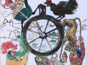 Ngoài ra còn có bức tranh “Chuyển Luân” (bánh xe xoay chuyển) của Phật gia tương quan với ý nghĩa luân hồi của kiếp người. Cũng có một bức họa khác dự ngôn về tân kỷ nguyên sắp tới của nhân loại tương lai, trong đó một vị trưởng lão đang giảng Đạo trước đám đông quần chúng ngồi nghe rất cung kính, và nhìn vào trang phục những người đó mặc, thì người ta thấy chính là Hán phục. Có người tu luyện nọ có thể thấy được tương lai từng kể rằng trang phục nhân loại tương lai về cơ bản đều là Hán phục (trang phục cổ đại của người Hán, Trung Quốc); đến thời đó con người đều cảm động trước đại ân cứu độ của vị Giác Giả.