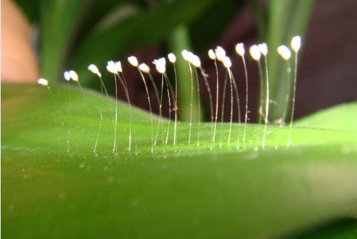 Khi soi kỹ, đó không phải là những giọt sương mai mà chính là bào tử. Bào tử là bộ phận sinh sản, khi đủ điều kiện sẽ phát tán ra ngoài môi trường, hình thành nên các “hoa Ưu Đàm” mới.