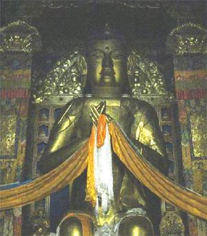 Chùa Labrang ở Cam Túc, Trung Quốc là một trong những ngôi chùa chính của Phật giáo Tây Tạng. Trong chùa Labrang là một tượng đồng mạ vàng tư thế nửa ngồi nửa đứng của Đại Phật Di Lặc, vị Phật tương lai, ám chỉ Phật Di Lặc rời khỏi ngai mang Pháp Luân tới nhân gian cứu độ thế nhân.