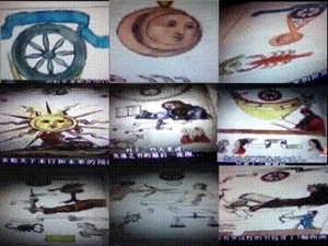 Trong một bức hình, có một con thuyền lớn, trên con thuyền có một cái “bánh xe”, Nostradamus ngồi chăm chú đọc một quyển sách bên cạnh con thuyền. Vậy quyển sách, con thuyền và “bánh xe” có quan hệ gì với nhau ? Ở một bức tranh khác, Nữ thần mặt trăng Artemis ôm một “bánh xe” giáng hạ từ trên trời xuống, khai thị cho con người biết về một tương lai mỹ hảo.
