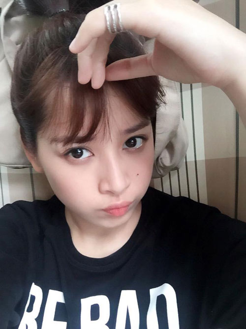 Chi Pu trẻ như em bé với kiểu tóc mái ngắn trên lông mày.
