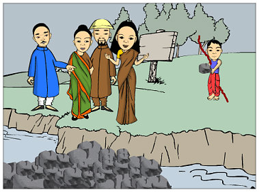 Thuở ấy ở một làng nọ có một cậu bé tàn tật chừng mươi tuổi, gẫy chân, sống một cuộc sống ăn xin nghèo khổ. Trước làng là một con suối lớn. Vì không có cầu, nên dân làng muốn qua suối là phải lội, rất bất tiện, nhất là đối với những người già vào mùa nước lũ.