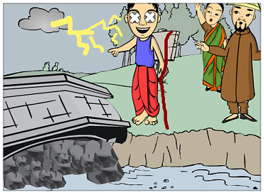 Nhiều năm đã qua đi như vậy, cho đến một hôm người ta thấy cậu bé ăn xin què quặt gom những tảng đá lớn về bên suối. “Cháu muốn xây cầu để mọi người đi lại thuận tiện”, cậu giải thích. Người làng cho đó là chuyện khôi hài của một cậu bé khùng nên không để ý đến.