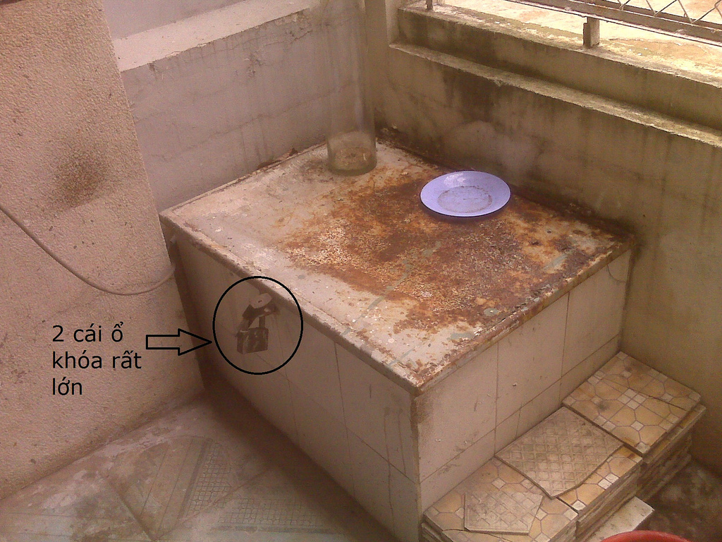 Còn cái giếng bị khóa 2 ổ trước nhà, bả giải thích là do hồi trước chỉ dùng tấm tôn đậy sơ sơ thôi nên có đứa con nít của 1 gia đình đến mướn trước đây tò mò mở ra nghịch máy bơm nên bị giật, nhưng “may mà không sao”, để cẩn thận thì bà chủ mới lấy tấm thép đậy lên và dùng 2 ổ khóa lớn khóa lại. Ông anh hỏi sao lại khóa đến 2 ổ.?? Bả nói “để cho chắc” thôi.!
