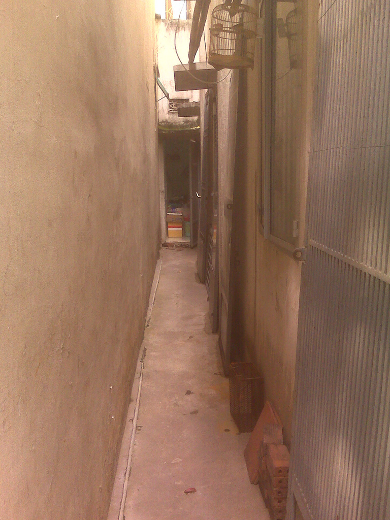 Đường luồn phía hông trái nhà, tất cả cửa sổ đã bị bịt hết.