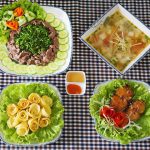 Dù các món ăn đều rất giản dị và gần gũi nhưng luôn đem lại cảm giác ngon miệng. Thực đơn cho 4-5 người ăn (2-3 người lớn, 2 trẻ con): – Sườn sụn xào chua ngọt – Tai heo luộc – Nộm xoài tôm – Tôm băm rim – Canh rau ngót thịt bằm …